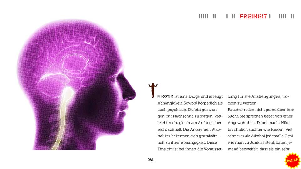 Wir haben für euch ein interaktives eBook gestaltet. Das Logo „BESSER OHNE“ verrät schon, was es sagen will. Lies mal rein: Schon die Texte sind nicht langweilig und dazu wird es richtig bunt mit Videos, Interviews, Bildstrecken und animierten Grafiken. Manchmal darfst du auch gerne mitmachen. Du kannst dein eBook direkt im Browser lesen. Optimiert ist es für Tablets. Wenn Du gerade mit dem Smartphone unterwegs bist – kein Problem. Machen wir uns nichts vor: Ein Smartphone-Monitor hat seine Grenzen. Aber du findest alle Artikel sogar als audio-files hier auf „besserohne.com.“