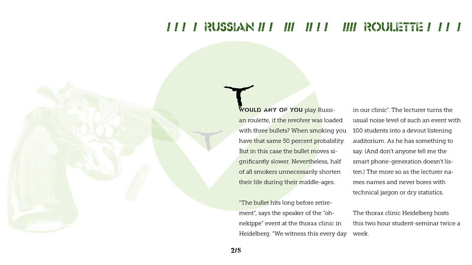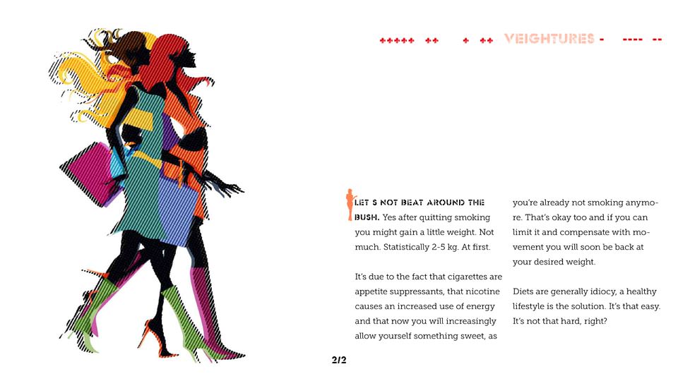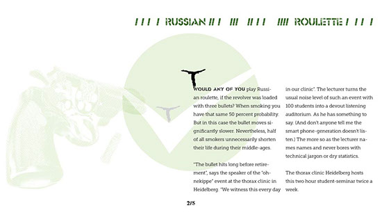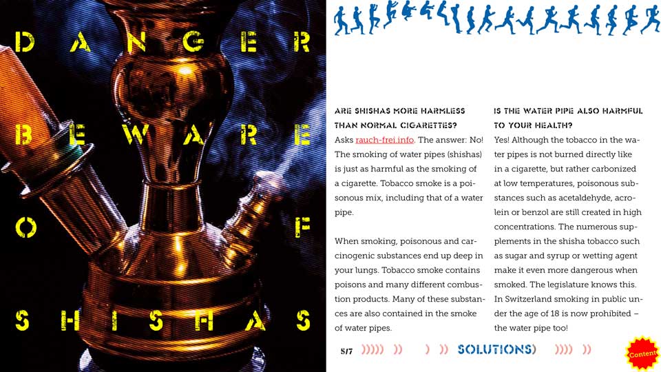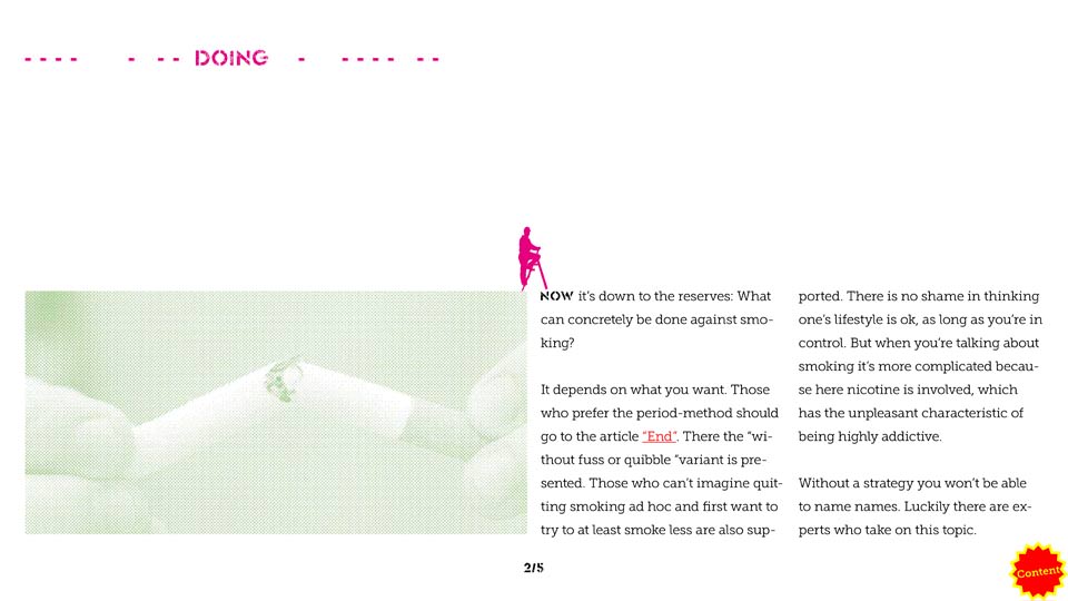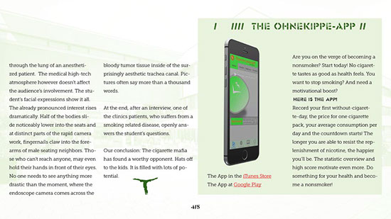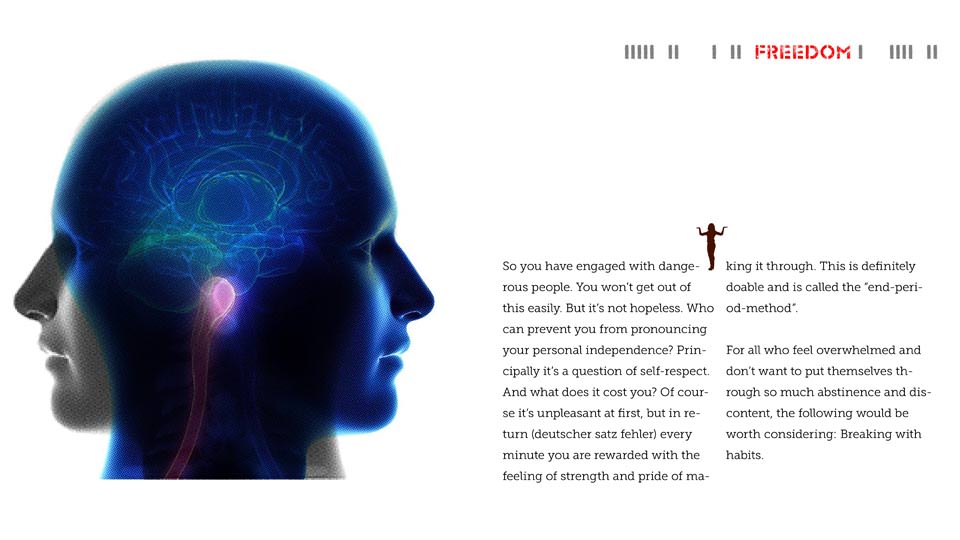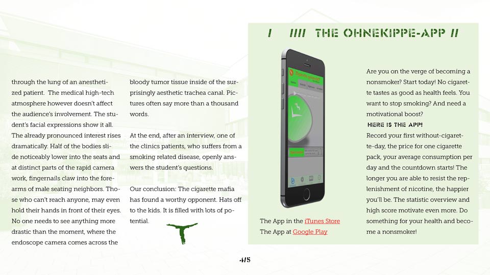 We designed an interactive eBook for you. The logo “betterwithout” already reveals what it’s trying to say. Read it: The texts aren’t boring and in addition it’s really colorful with videos, interviews, photos and animated graphics. Sometimes you can even join in. You can read your eBook directly on your browser. Optimize it for your tablets. If you’re currently out with your Smartphone – no problem. You can even find every article as audio-files at “besserohne.com”.