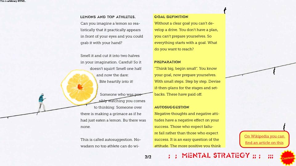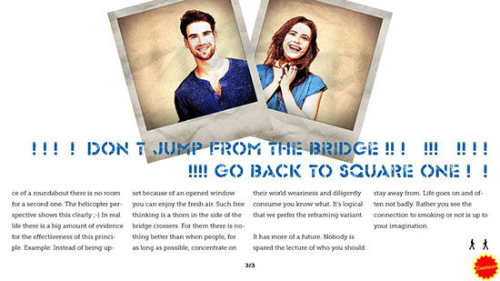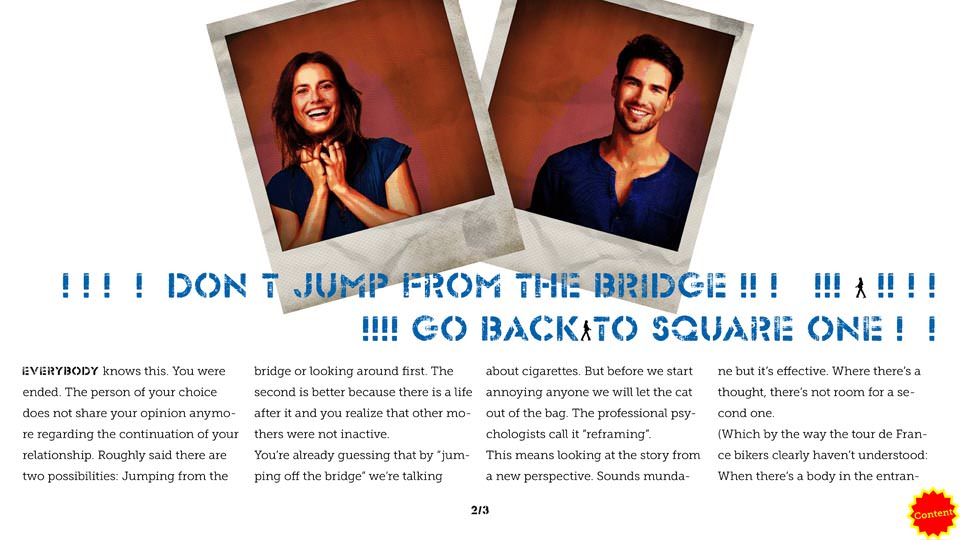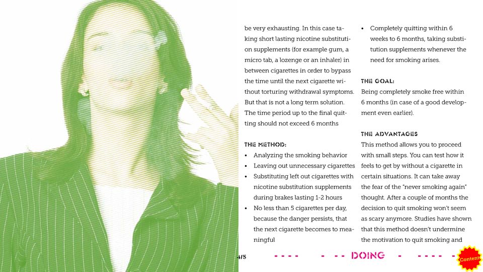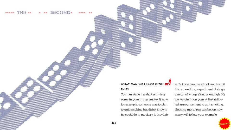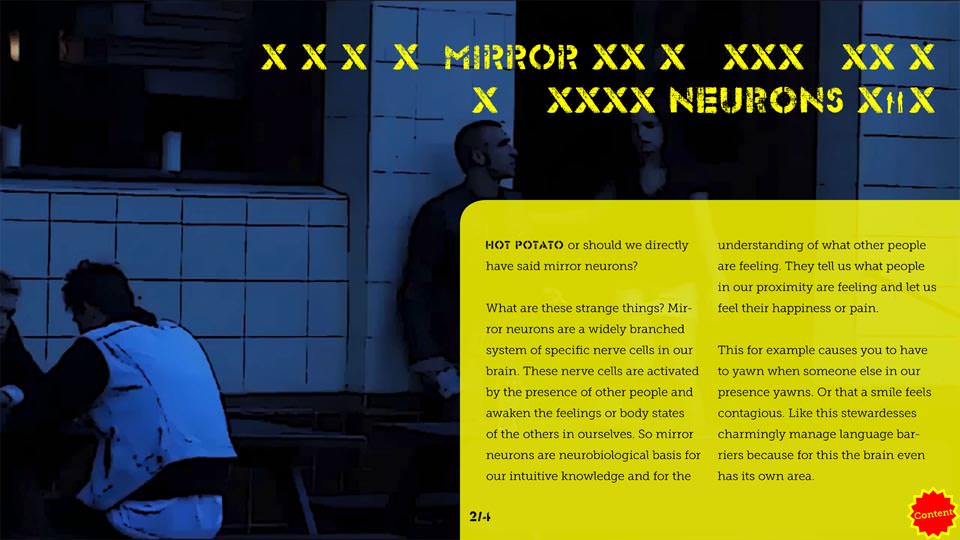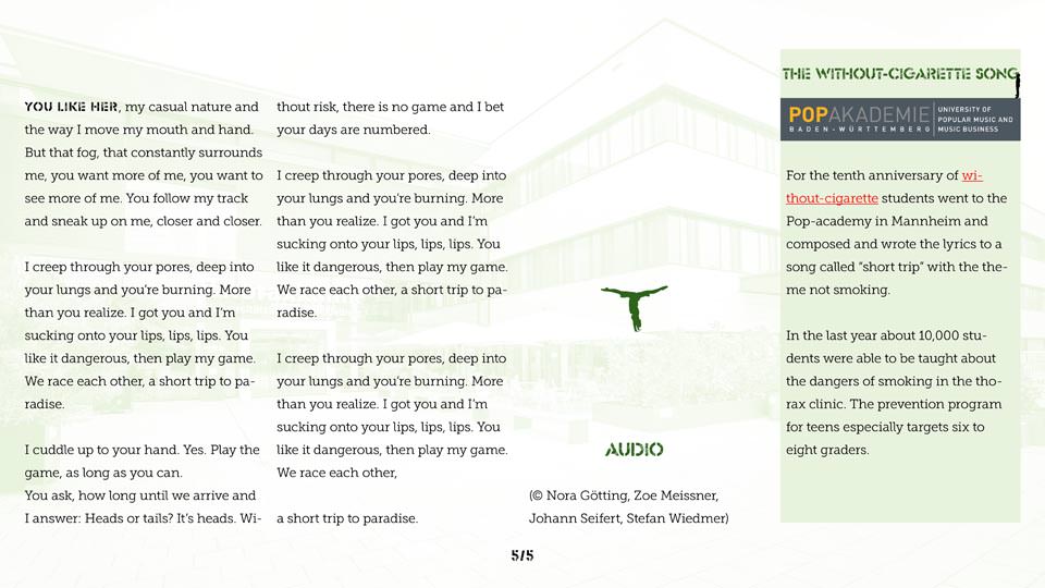 We designed an interactive eBook for you. The logo “betterwithout” already reveals what it’s trying to say. Read it: The texts aren’t boring and in addition it’s really colorful with videos, interviews, photos and animated graphics. Sometimes you can even join in. You can read your eBook directly on your browser. Optimize it for your tablets. If you’re currently out with your Smartphone – no problem. You can even find every article as audio-files at “besserohne.com”.