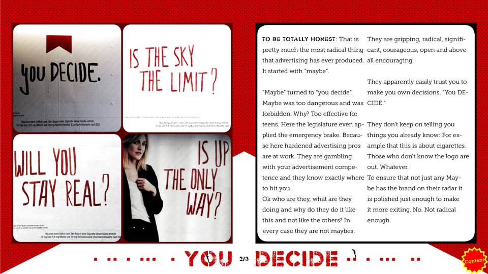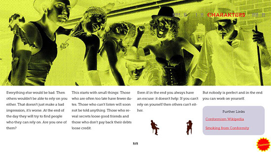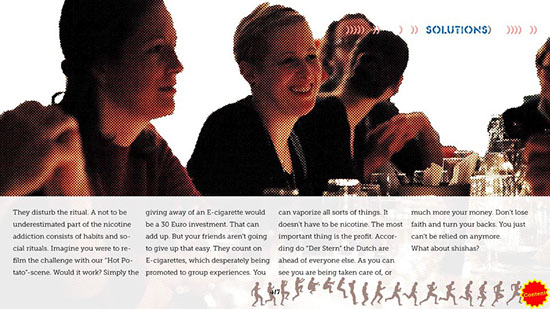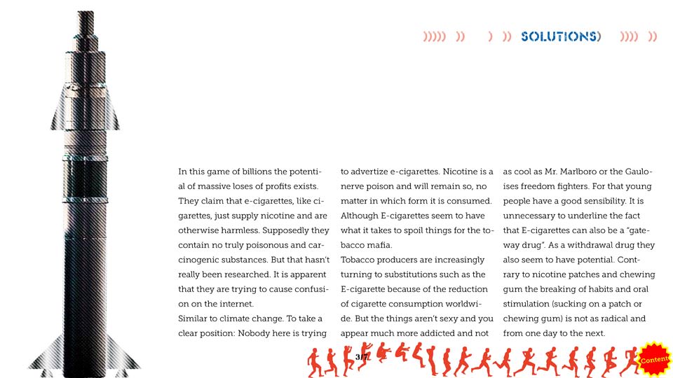 We designed an interactive eBook for you. The logo “betterwithout” already reveals what it’s trying to say. Read it: The texts aren’t boring and in addition it’s really colorful with videos, interviews, photos and animated graphics. Sometimes you can even join in. You can read your eBook directly on your browser. Optimized for tablets. If you’re currently out with your Smartphone – no problem. You can even find every article as audio-file.
