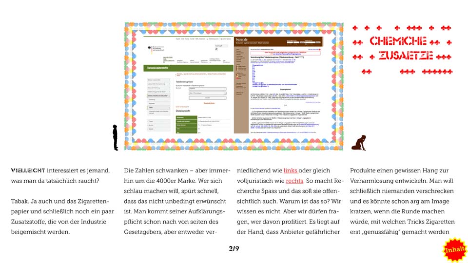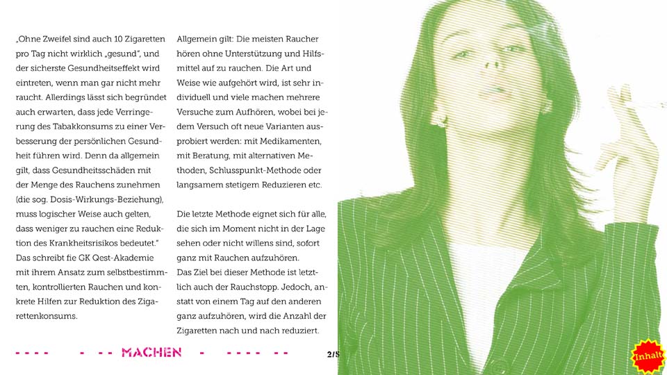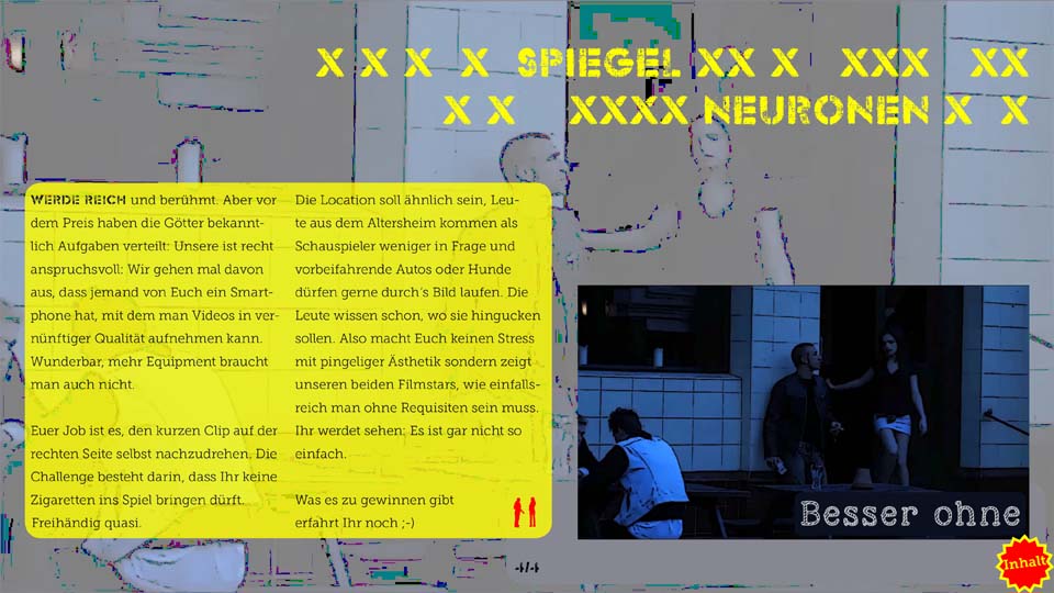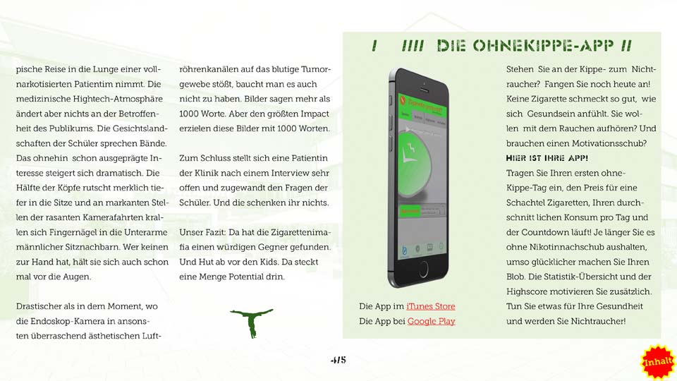Wir haben für euch ein interaktives eBook gestaltet. Das Logo „BESSER OHNE“ verrät schon, was es sagen will. Lies mal rein: Schon die Texte sind nicht langweilig und dazu wird es richtig bunt mit Videos, Interviews, Bildstrecken und animierten Grafiken. Manchmal darfst du auch gerne mitmachen. Du kannst dein eBook direkt im Browser lesen. Optimiert ist es für Tablets. Wenn Du gerade mit dem Smartphone unterwegs bist – kein Problem. Machen wir uns nichts vor: Ein Smartphone-Monitor hat seine Grenzen. Aber du findest alle Artikel sogar als audio-files hier auf „besserohne.com.“